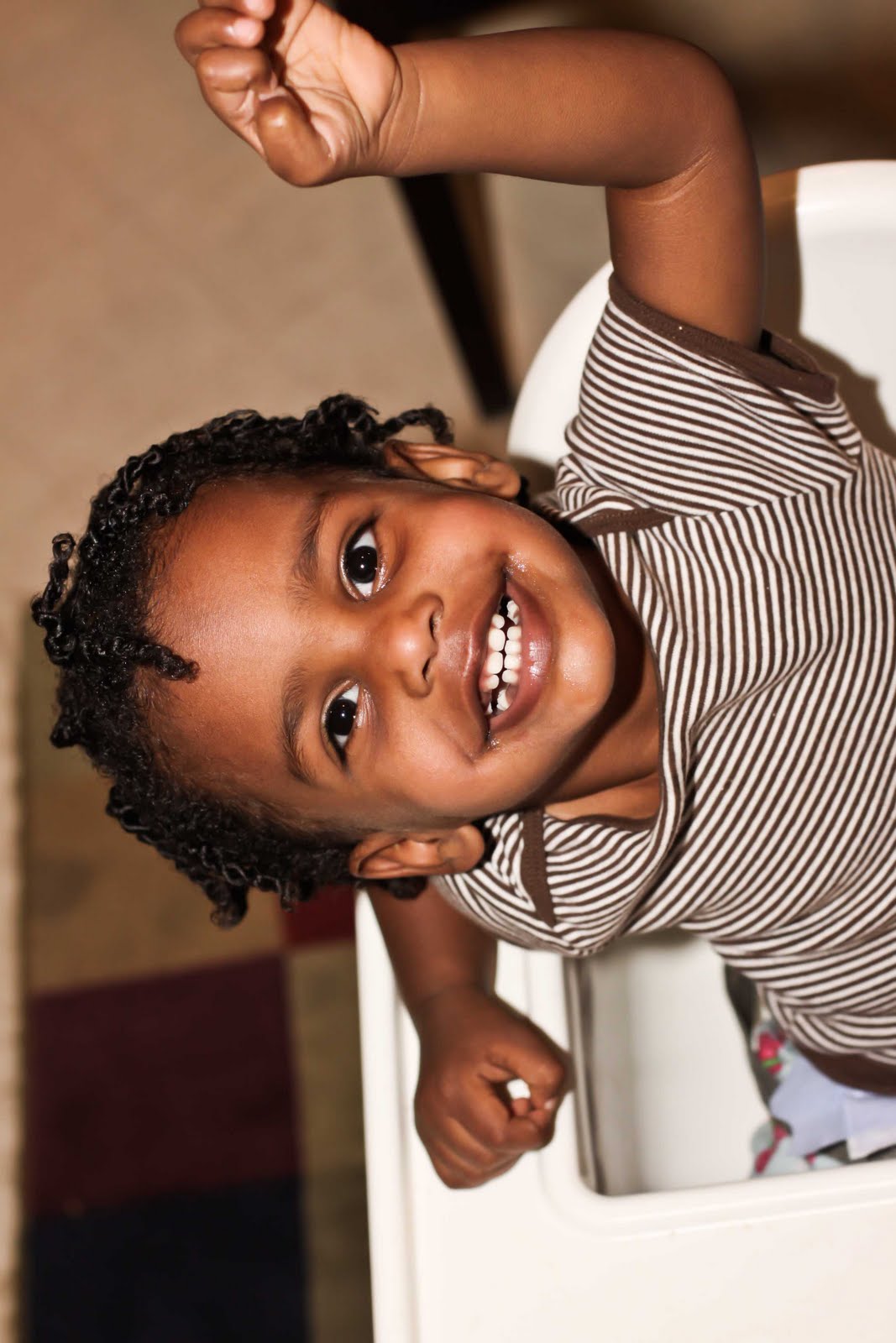 "Ms. V joined our family when she was 11 months old... with the tiniest little coils we had ever seen. It was tough, but we suppressed our styling-desires until her hair reached 5 inches soaking wet. Between 11 - 23 months, we washed/conditioned/detangled once a week (using Blended Beauty products alone) and moisturized daily, sometimes with coconut oil and sometimes with a leave in. Her hair grew insanely fast and just before her second birthday, we got brave.